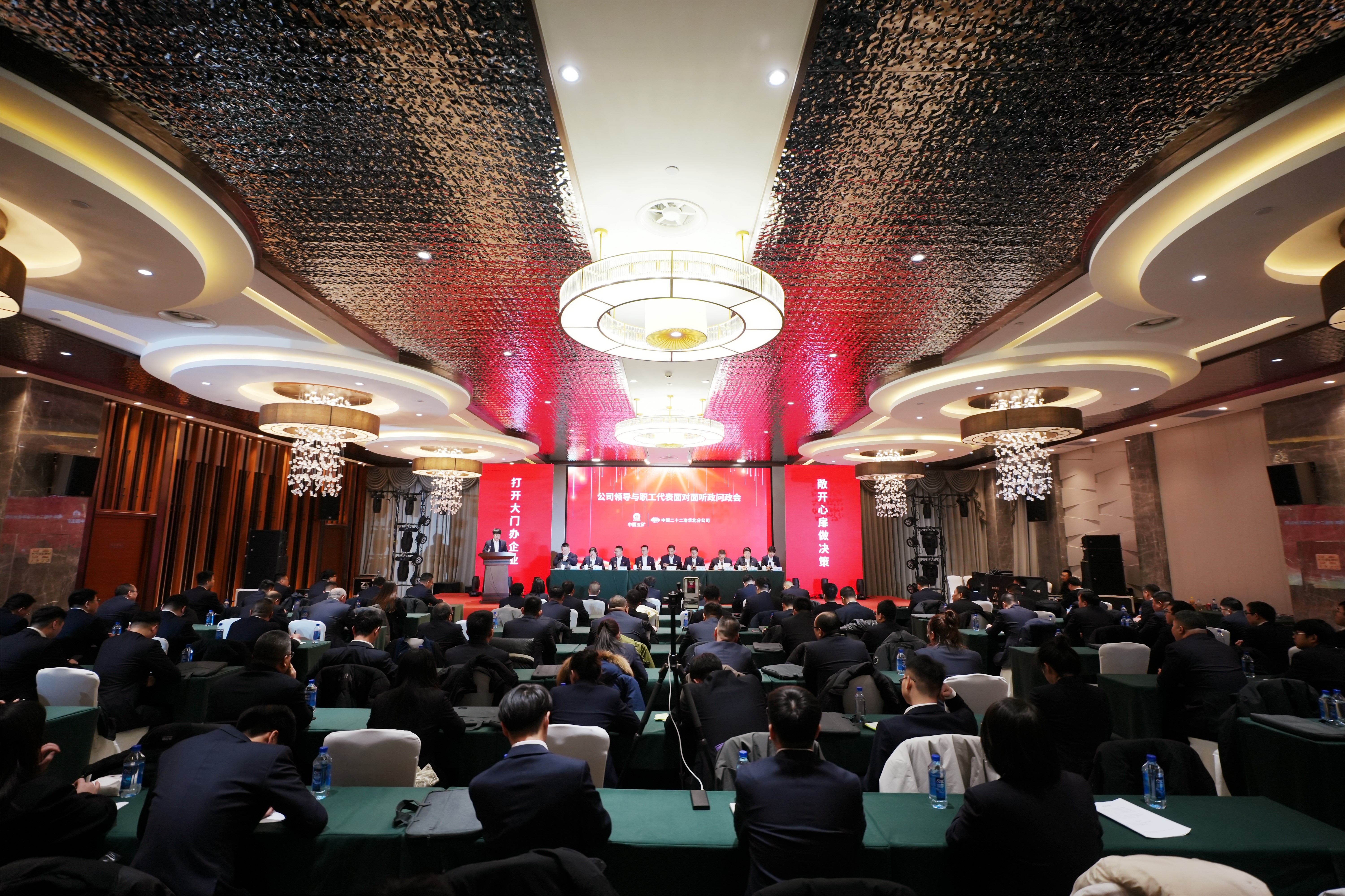 公司助理級以上領(lǐng)導(dǎo),機(jī)關(guān)各部門部長、職工代表,在唐項(xiàng)目班子成員、職工代表,外地項(xiàng)目項(xiàng)目經(jīng)理、黨支部書記、職工代表現(xiàn)場參會;外地項(xiàng)目班子成員及負(fù)責(zé)人以上人員視頻參會。