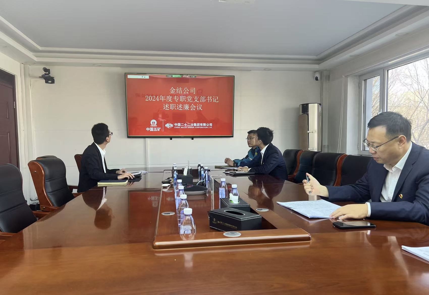 公司黨委辦公室、黨委組織部、黨群工作部、紀檢部、法務(wù)部主要負責(zé)人現(xiàn)場參會。公司在唐黨支部書記現(xiàn)場述職,各項目黨支部書記視頻述職。