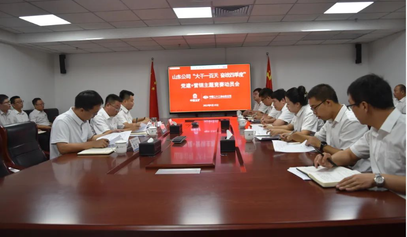 根據習近平總書記在學習貫徹習近平新時代中國特色社會主義思想主題教育工作會議上的重要講話精神,為進一步用黨的創新理論統一思想、統一意志、統一行動,發揮黨員頭雁作用。9月15日,山東公司開展“大干一百天 奮戰四季度”黨建+營銷主題競賽動員會。旨在深入貫徹落實集團公司三季度營銷工作會議精神,持續深化產業鏈營銷和城市營銷工作安排,廣泛營造“主動作為比貢獻、實現目標見成效”的濃厚氛圍,加快提升全體營銷人員的干事熱情,力爭早日實現全面完成新簽合同指標的預期目標。