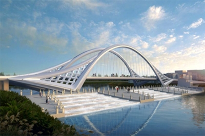 鳳飛路橋與二級壩采用結合設計。鳳飛路橋工程位于海營生態智慧城規劃的鳳飛路上,工程大致呈南北走向。橋梁全長370米,全橋采用連續鋼砼混凝土結合梁,在7號墩設置裝飾橋塔,橋塔塔高86.9米。斜拉索采用高強平行鋼絲鎖呈扇形布置,設計壽命要求達到25年,并考慮其可更換性。工程完成后,對海營生態智慧城景觀建設以及城市整體形象的提升有巨大推動作用。帶領“唐山市職工創新工作室”圍繞預應力重型裝備設計、多向模鍛生產線的關鍵工藝、冶金及環保行業非標設備等方向進行研究和技術開發,及時滿足了市場需求,快速推出創新產品,著力新產品開發、技術工藝改進,支撐企業技術創新。