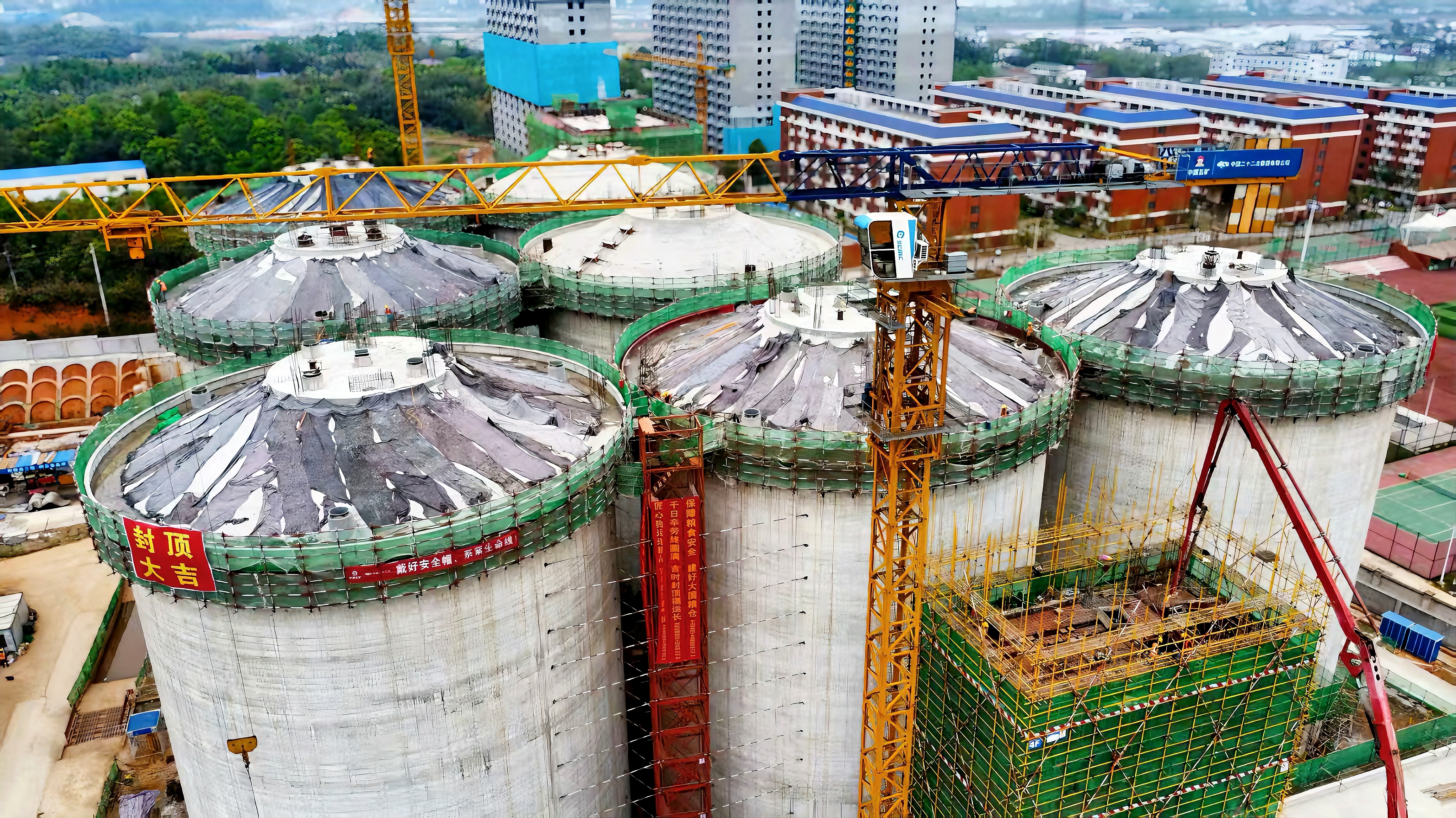 4月7日,浙江公司中央儲備糧寧鄉(xiāng)直屬庫糧食倉儲物流項目建設迎來重大節(jié)點——7座直徑 25 米淺圓倉倉頂順利封頂。自2024年10月項目開工以來,面對復雜的施工環(huán)境和技術(shù)難題,項目團隊精心策劃、科學調(diào)度,組織多次專家論證,合理安排施工工序,有效克服了諸多挑戰(zhàn)。在春節(jié)筒倉滑模施工期間,項目人員協(xié)同配合,緊盯施工質(zhì)量與現(xiàn)場安全,確保倉壁滑模施工質(zhì)量一次成優(yōu),為此次倉頂順利封頂?shù)於藞詫嵒A(chǔ)。筒倉倉頂?shù)捻樌忭敚瑯酥局?/span>中央儲備糧寧鄉(xiāng)直屬庫糧食倉儲物流項目建設取得了階段性重大成果,為后續(xù)工程推進創(chuàng)造了有利條件。未來,中儲糧項目團隊將繼續(xù)秉持高標準、嚴要求原則,加快推進項目后續(xù)建設,確保項目早日竣工投運。