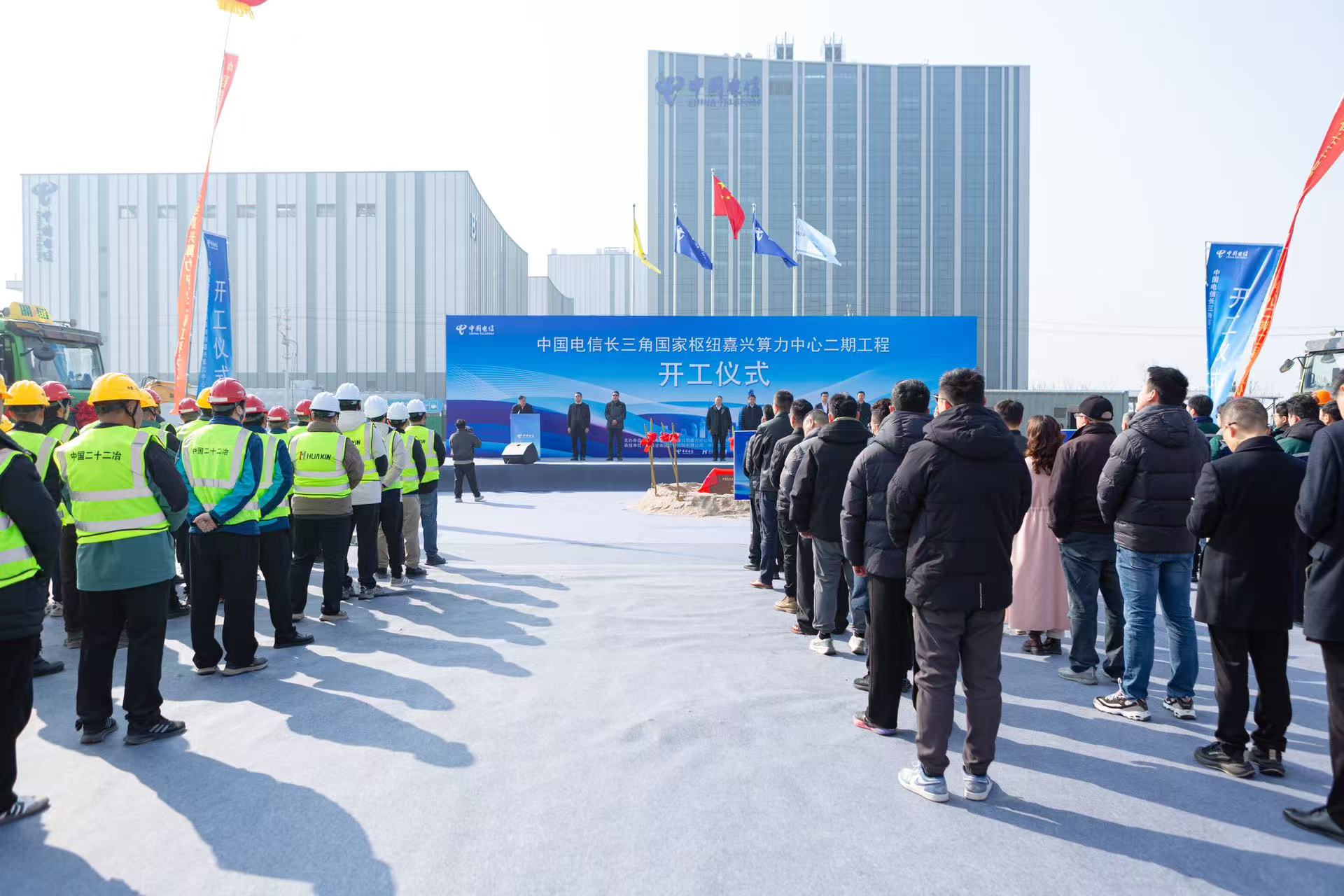 2月12日,中國(guó)二十二冶浙江分公司承建的中國(guó)電信長(zhǎng)三角國(guó)家樞紐嘉興算力中心二期工程開(kāi)工奠基儀式在嘉興市嘉善縣舉行。